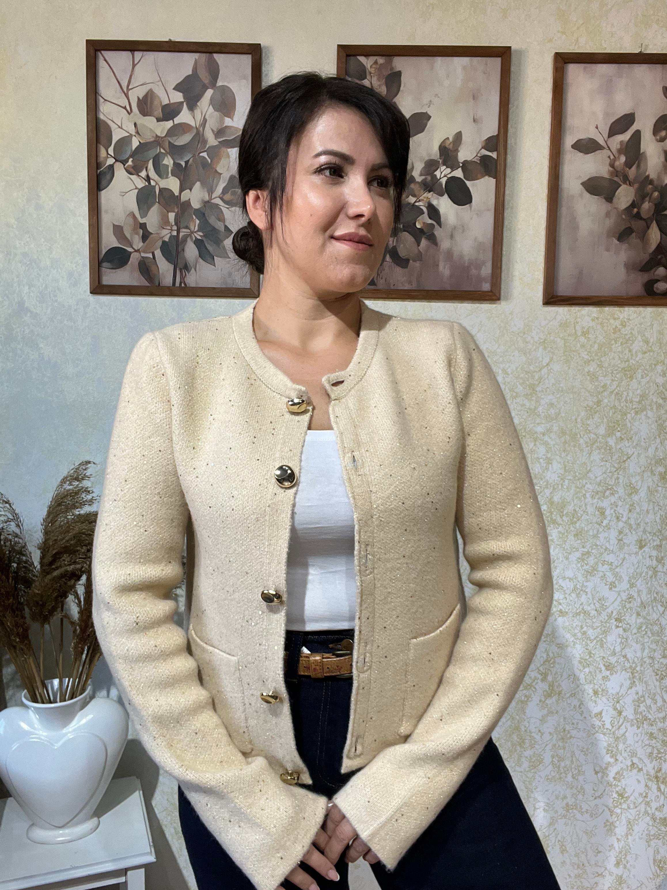 Krem Dilvin Sim Geçişli Ceket Hırka